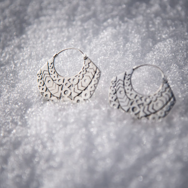 Ce design est inspiré des anciennes sociétés Aztèques et Maya. Elles existent en deux tailles, une plus imposante rappelant les bijoux tribaux qu’ils arboraient. On retrouve les formes des parures antiques de la culture tribale et des ornements antiques.